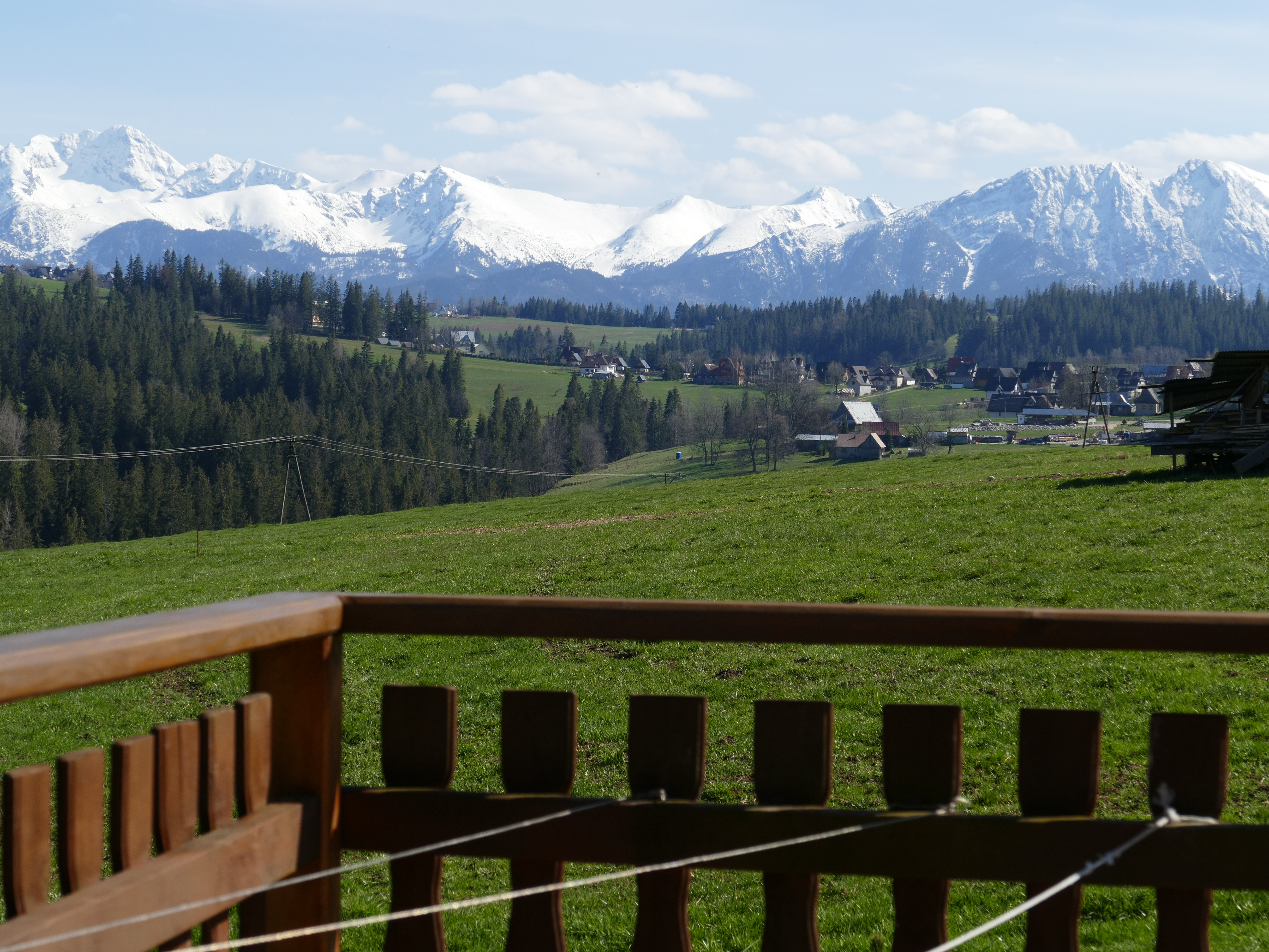 Wychodząc na taras zachwycisz się widokiem Giewontu i Tatr od Wysokich do Zachodnich. Zachody słońca — te są najpiękniejsze z Bachledowskiego Wierchu, a to tylko 15 minut pieszo z naszej chaty.