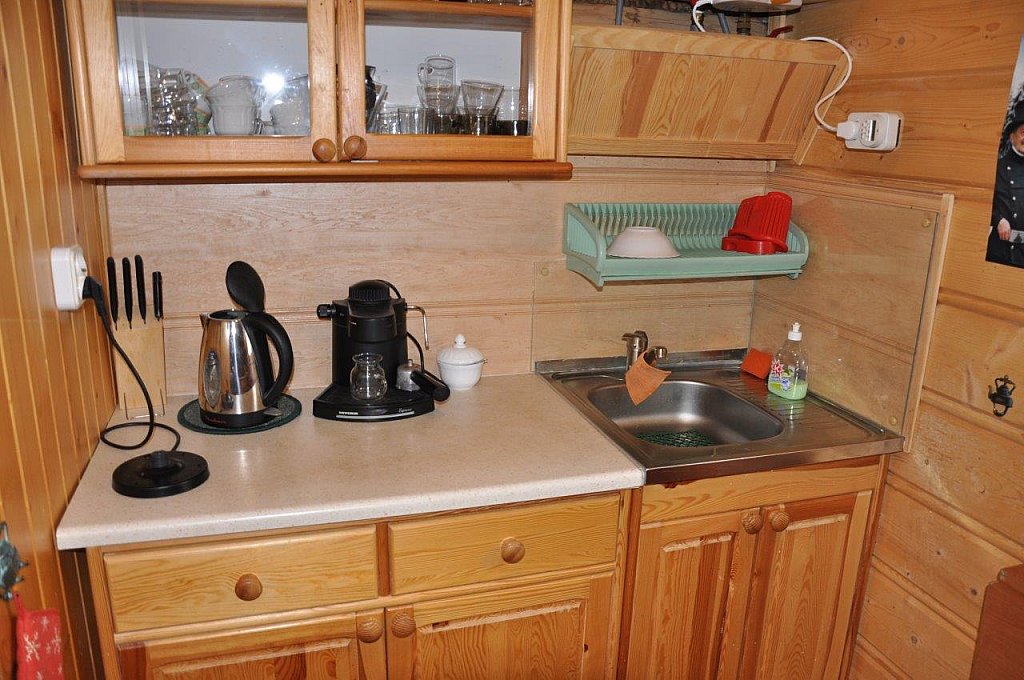 Dom posiada w pełni wyposażoną kuchnię na parterze: lodówka, kuchenka, piekarnik, czajnik, ekspres do kawy. Dostępna pełna zastawa stołowa, garnki i sztućce. Goście mają do dyspozycji cały dom na wyłączność, w tym pełną kuchnię.