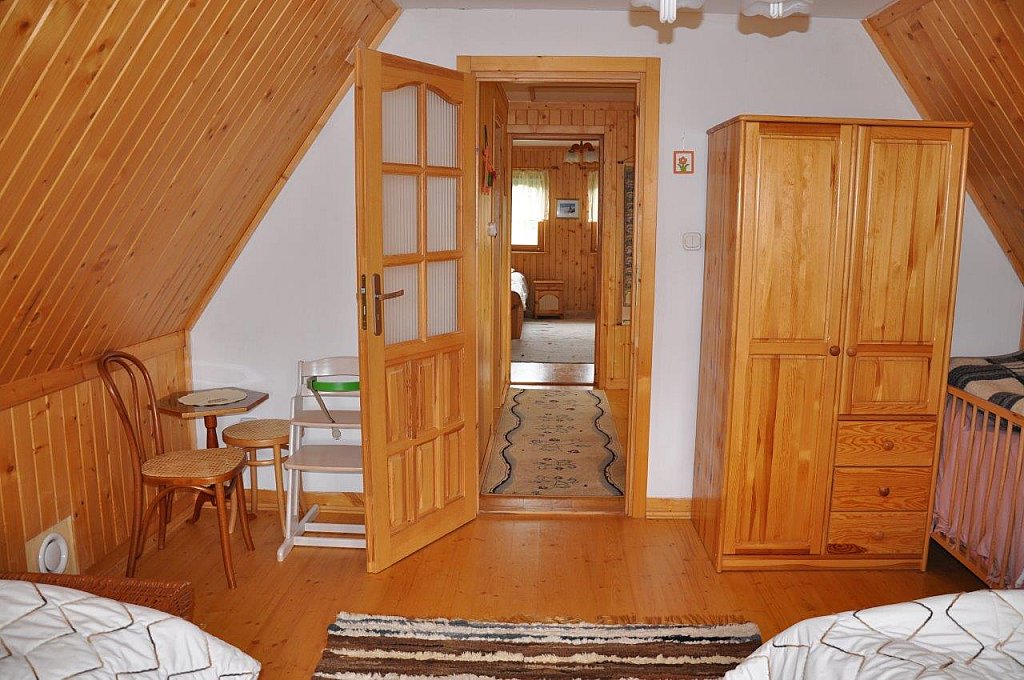 Na piętrze dwie osobne sypialnie i wyjątkowy aneks widokowy z panoramą Tatr — idealne miejsce na poranne zachwyty nad Giewontem.
